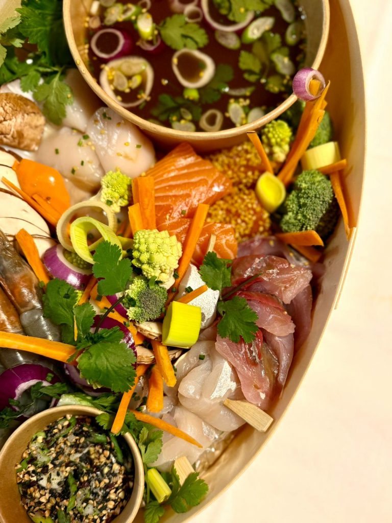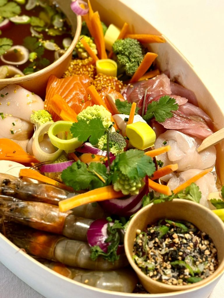Inspiré de la tradition asiatique de la fondue, cette version marine met à l’honneur la fraîcheur des poissons, la simplicité du geste et la richesse d’un bouillon de poissons fait maison.