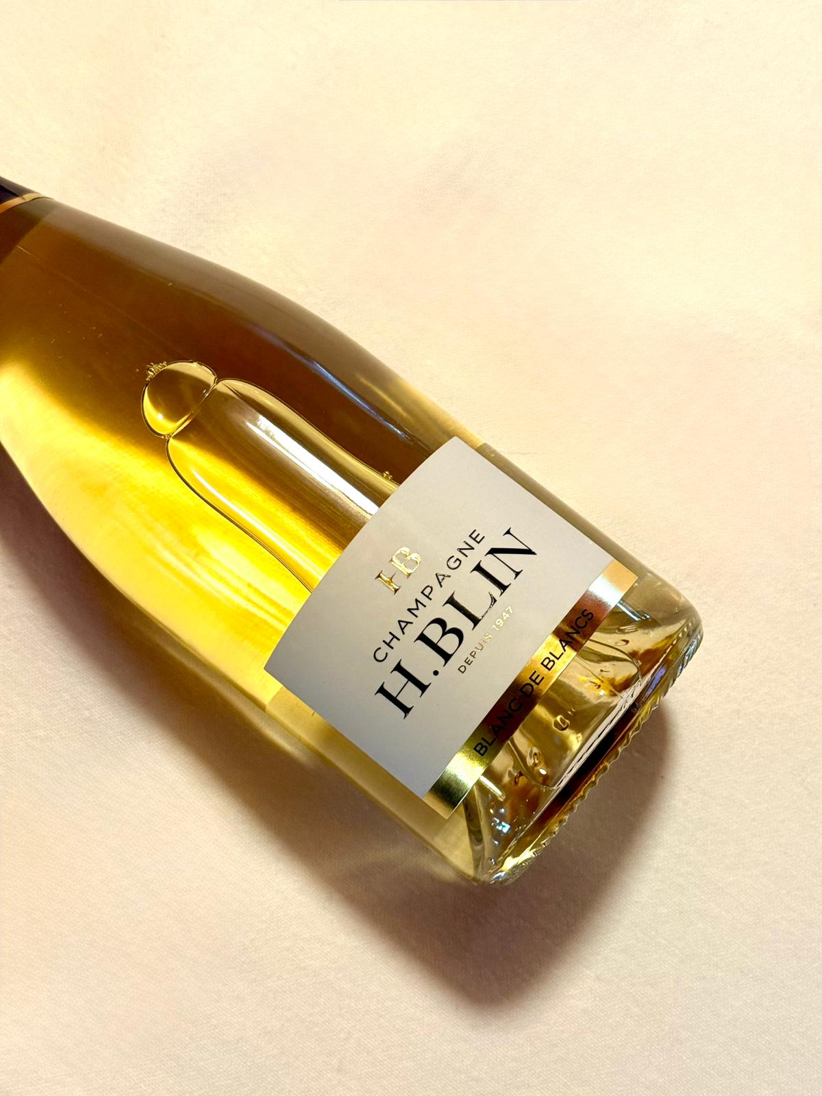 Le champagne blanc de blanc H.Blin 100% chardonnay est caractérisé par sa fraîcheur et son harmonie. Léger et suave, la dégustation de ce champagne se fait dans une évolution gustative permanente, jusqu'à aboutir sur une finale légèrement saline grâce à quelques notes minérales qui s'accorde parfaitement avec les huîtres ou encore des noix de St-Jacques.