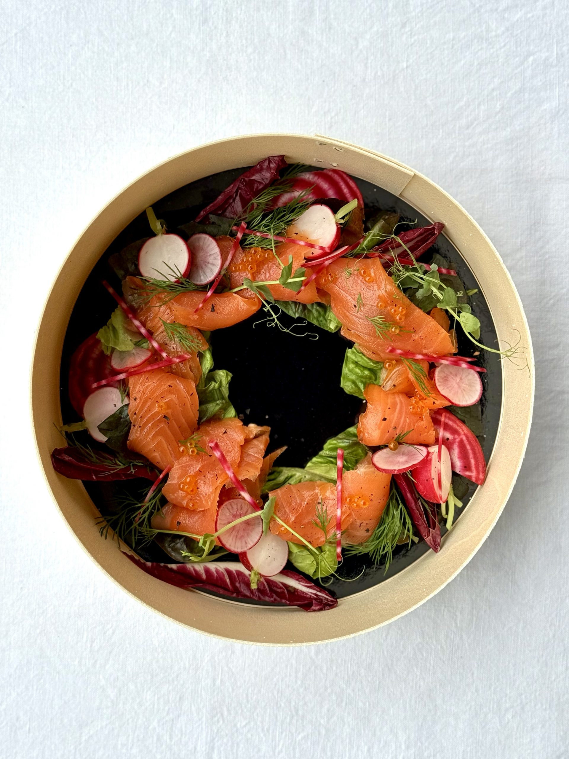 Découvrez la finesse et la douceur incomparables de la truite fumée de l'Isle sur la Sorgue, issue de la renommée pisciculture Meyer, travaillé par Eulalie Rus.